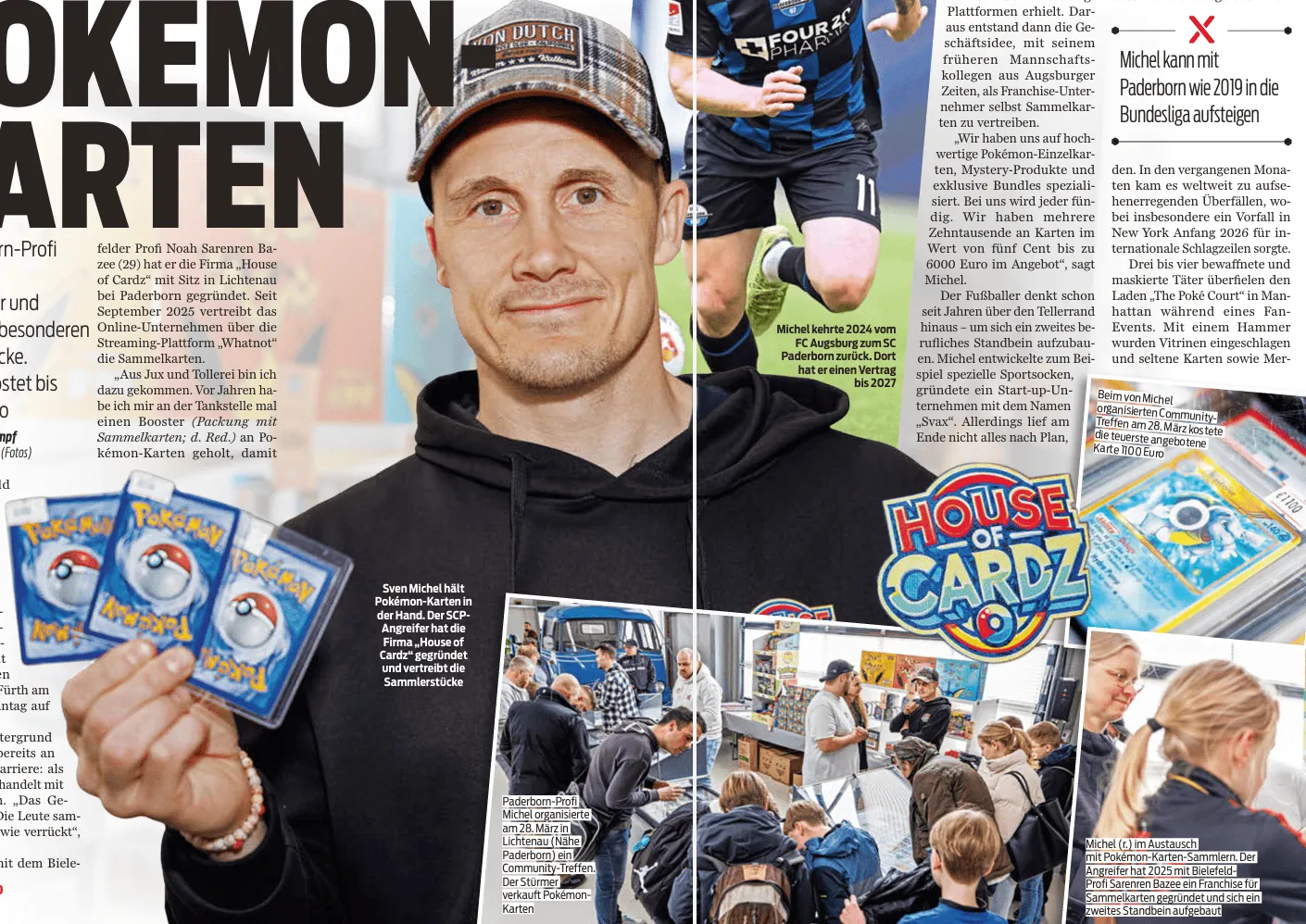 这位帕德博恩人对收藏的热情如此之高,以至于他通过私人关系收到了一些邀请,在直播平台上竞拍宝可梦卡牌。这让他萌生了与奥格斯堡时期的队友合作,以加盟店的形式销售集换式卡牌的想法。